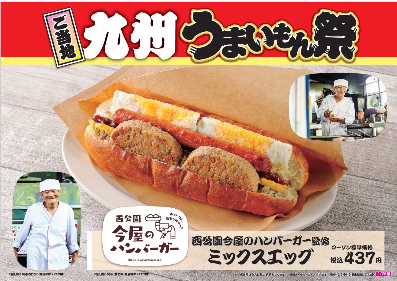 九州および山口県下関市(豊北町・豊浦町除く)のローソン店舗にて『 西公園今屋のハンバーガー監修 ミックスエッグ 』が発売されました。